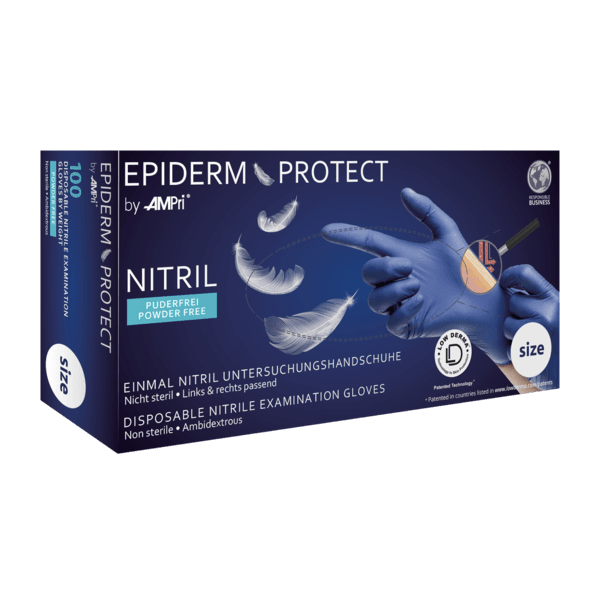Los guantes de nitrilo MED-COMFORT METAL BLUE EPIDERM PROTECT ofrecen una protección fiable en entornos sanitarios, alimentarios y domésticos. Su fabricación sin polvo reduce el riesgo de irritaciones y garantiza un tacto suave y flexible, permitiéndote maniobrar con precisión sin descuidar la seguridad.