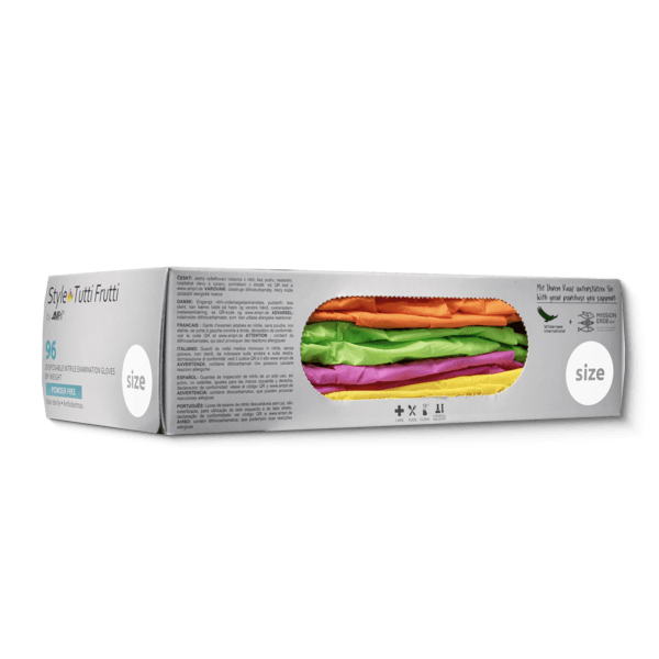 Guante nitrilo Tutti Frutti sin polvo multicolor – 96 ud | EPI cat. III PS clase I